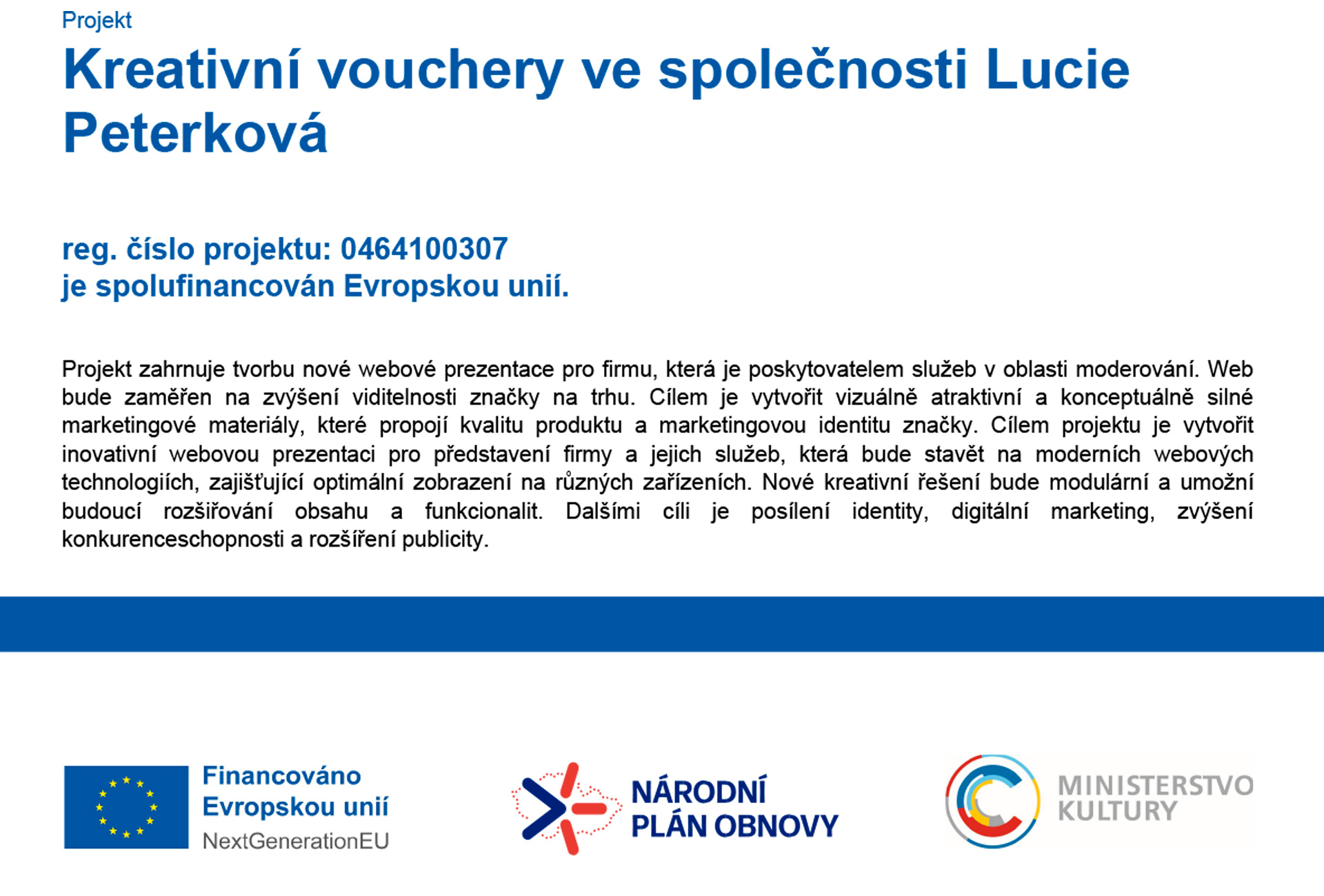Povinnost publicity vychází z rozhodnutí po poskytnutí dotace a řídí se metodickými materiály k Národnímu plánu obnovy (NPO).